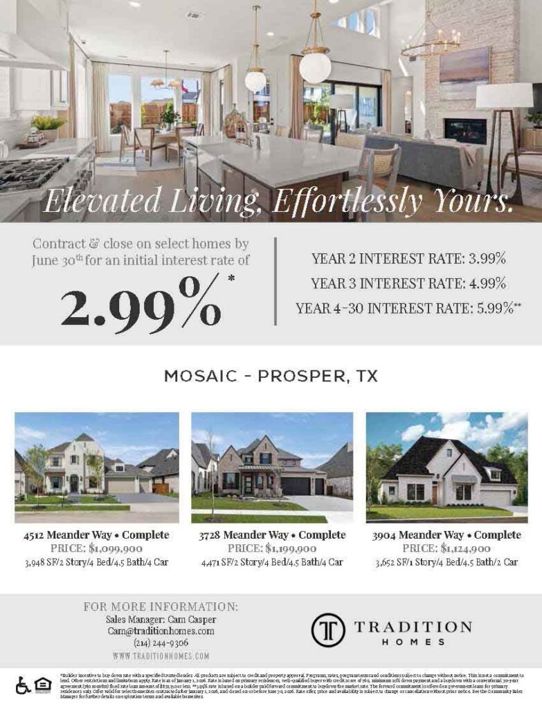 The company’s broader portfolio includes Meraki, an 1,100-acre community in Forney; Sherley Farms, a 970-acre development in Anna; and Mirabella, a 190-acre project in Prosper co-developed with Highland Homes.