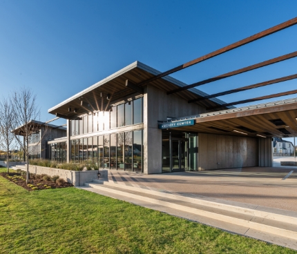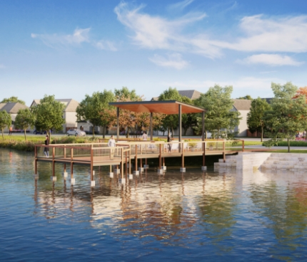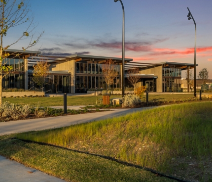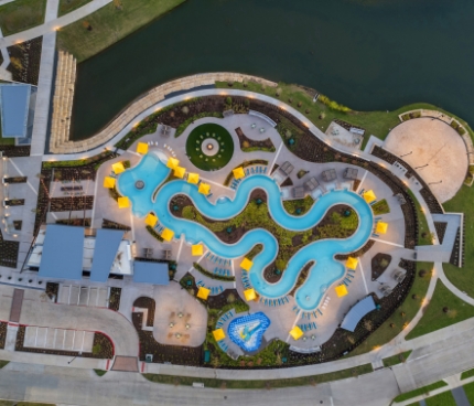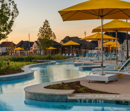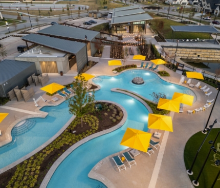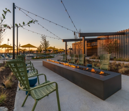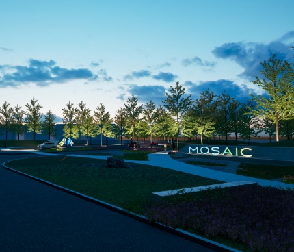 The Entry Monument was designed as a beacon, welcoming all to the Mosaic community and calling our families home. Soaring 30 feet high and set atop a raised berm, the illuminated tower is visible from the Tollway. Constructed of steel and poly-mesh, it is complemented by lighted signage and thoughtfully designed landscaping, creating a striking and memorable arrival experience.