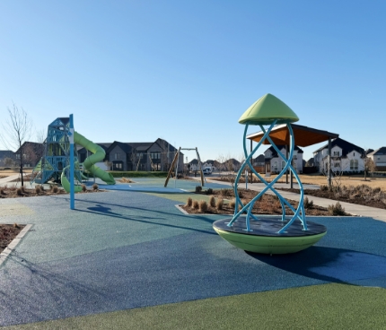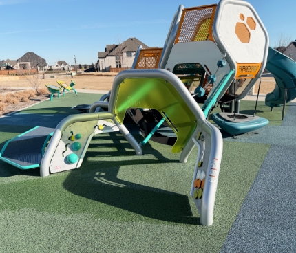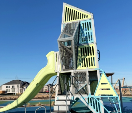 Lucia Park is designed primarily for children ages 5–12, featuring dynamic play elements that encourage active movement, climbing, and adventure. The 82-foot zip line is a standout feature that adds an exciting sense of speed and fun. With the exception of the swing and slide, which are designed for ages 2–5, the park offers engaging challenges that keep older kids active and entertained.